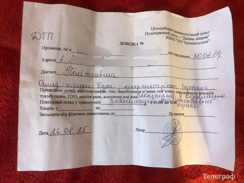 Після інциденту підліток був у шоковому стані й не одразу зрозумів, які травми отримав. Згодом його доставили до лікарні, де діагностували політравму. Згідно з повідомленням читатчів, у хлопця — політравма та розрив легені. Нині він перебуває у реанімації.