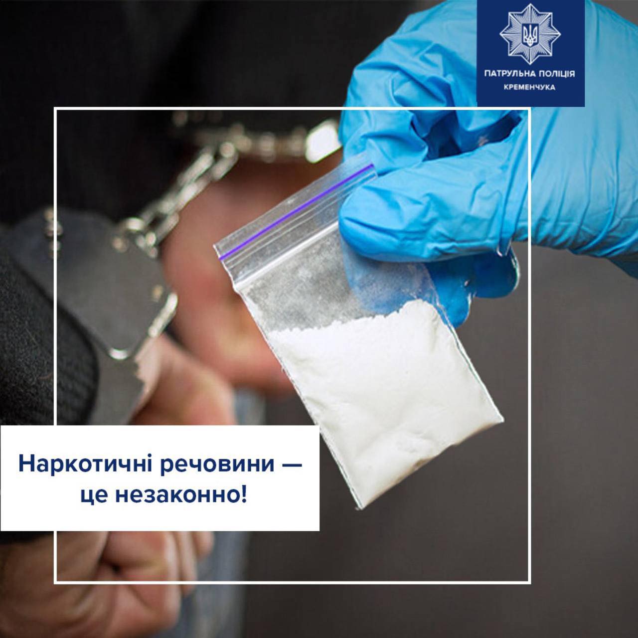 Учора, 25 січня, патрульні зупинили автомобіль Skoda, який проїхав на заборонний сигнал світлофора. Під час спілкування з водієм правоохоронці помітили в нього ознаки наркотичного сп’яніння. Крім того, під час поверхневої перевірки автівки виявили речовини, схожі на наркотичні. Про це повідомила пресслужба Патрульної поліції Кременчука.