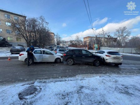 4 лютого, близько 13.00, в місті Полтава на перехресті вулиць Шолом-Алейхема та Володимира Козака сталась потрійна дорожнього-транспортна пригода. Про це інформує пресслужба Патрульної поліції Полтавської області.