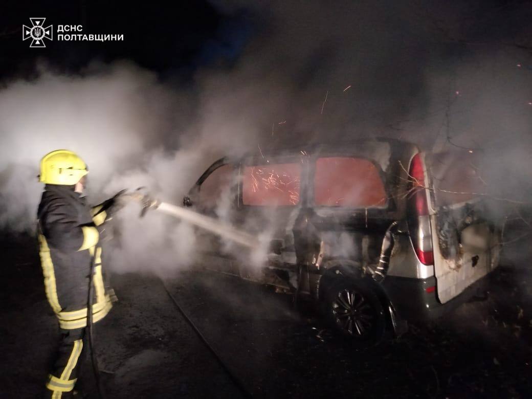 Відомо, що на місце прибули рятувальники 15-ї державної пожежно-рятувальної частини. На місці вони встановили, що горить легковик Mercedes Vito.
