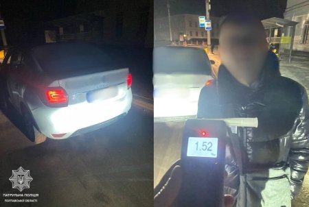 Під час спілкування з водієм поліцейські помітили ознаки алкогольного сп’яніння. Чоловік погодився пройти огляд на місці за допомогою алкотестера Драгер, який показав 1,52 проміле.