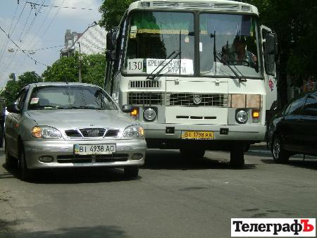 На улице Пролетарской в Кременчуге из-за огромной ямы на дороге столкнулись пассажирский автобус №130 и легковой автомобиль Daewoo. Это произошло около 11.30 13 июля.