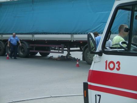 Водитель «МАЗа» рассказал, что услышал крик и увидел в зеркале заднего вида, как из-под полуприцепа начали вылетать продукты. Он остановился, вышел из кабины и увидел под прицепом женщину. На месте работают сотрудники городского отдела ГАИ, следователь по расследованию ДТП.