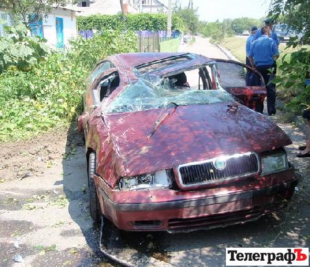 В субботу, 17 июля, в полдень в Кременчуге по улице Железнодорожников произошло ДТП. ’’Шкода Октавия’’ съехала с дороги в кювет и перевернулась. Как выяснилось, за рулем авто был работник одной из кременчугских автомоек.