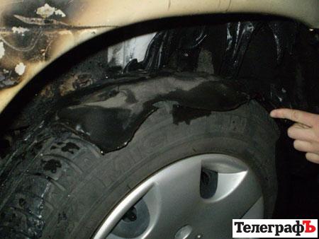 Эксперты уже установили, чем поджигатели уничтожают авто, но в интересах следствия милиционеры не называют составные вещества. Известно, что это жидкость. Злоумышленник бросает смесь на колесо автомобиля, и оно, из-за высокой температуры, начинает гореть, и огонь съедает весь автомобиль. Поскольку огонь появляется не сразу, злоумышленник успевает исчезнуть незамеченным.