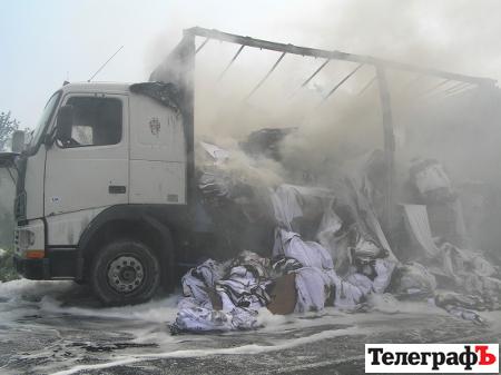 Огонь уничтожил два задних колеса, тентовое покрытие, топливный бак, металлический каркас и груз – трикотажное полотно.