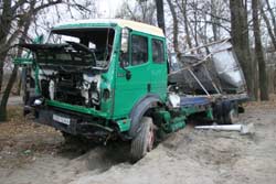 Понівечена фура “Мерседеса” дає підстави стверджувати, що під час зіткнення з мікроавтобусом вантажівка вдарила його правою передньою частиною кабіни