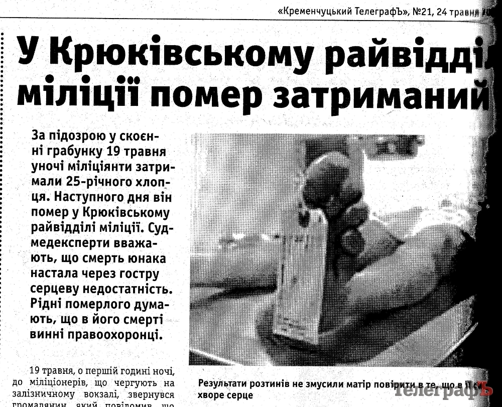 Как оказалось в последствии, сердце молодого человека перестало биться в стенах райотдела милиции – после того, как уехала его мать.