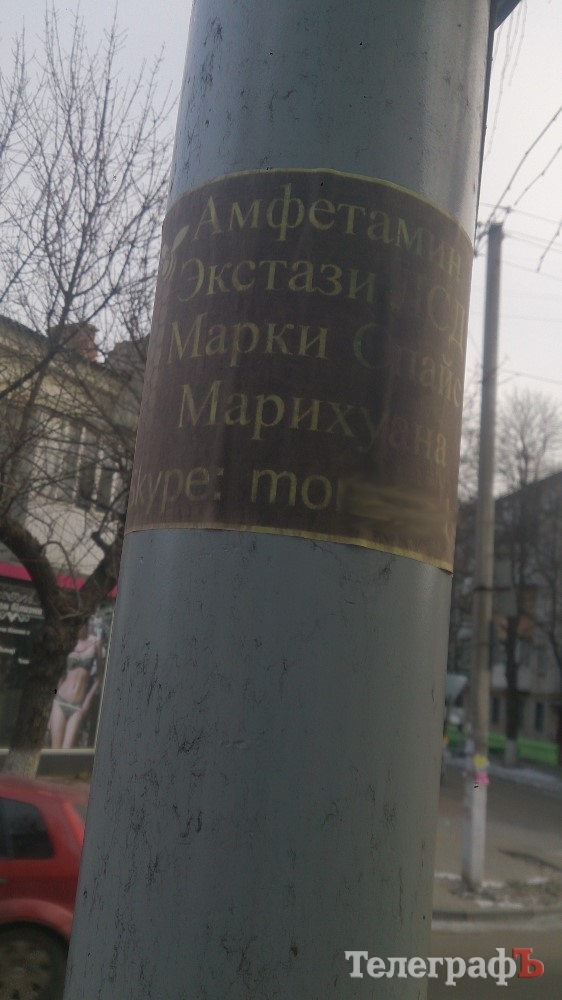 Начиная с конца декабря, в разных районах Кременчуга начали появляться объявления о продаже наркотиков – амфетамин, экстези, ЛСД, спайс, марихуана, с указанием контакта в Skype. Данная «рекалама» вызывает разные эмоции у людей – кто-то воспринимает, как должное, а кто-то возмущается, мол «страну довели».