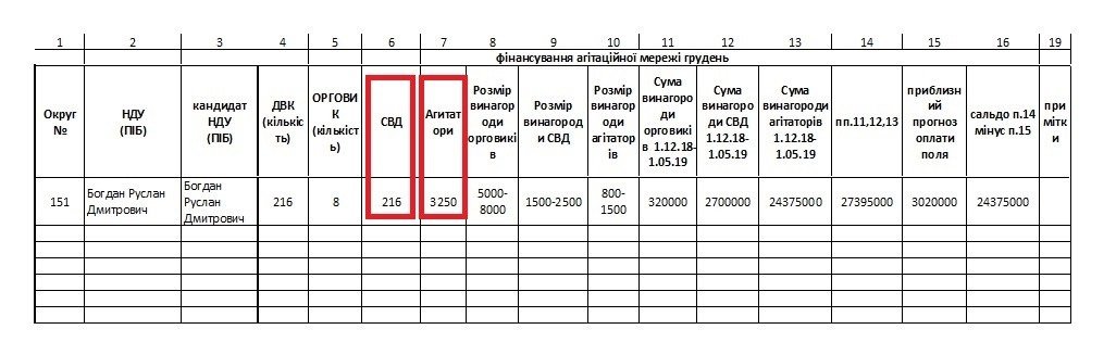 В документі від грудня 2018 року розписані витрати на «фінансування агітаційної мережі».