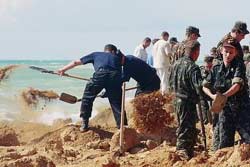 За її словами, всю ніч на середу рятувальники МНС, фахівці комунальних служб, добровольці, моряки, змінами десь по 100 чоловік кожна, розкопували місце обвалу. “Проводити пошукові роботи заважає шторм. Велика техніка не змогла дістатися до місця завалу. Копали здебільшого, лопатами. По місцевому радіо передали звернення до городян, які мають собак, навчених шукати людей, з проханням допомогти у пошуках. Хотіли розмивати пісок катерами з брандспойдів, але через шторм катер не може вийти в море”, – каже Вікторія Назарова.