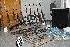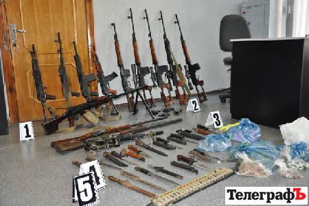 4 снайперські гвинтівки, 3 мисливські рушниці, 6 автоматів, кулемет, 3 пістолети, револьвер, 13 ножів, 2 металевих клинка та більше тисячі набоїв різного калібру. Все це чоловік зберігав у будинку. В харківській квартирі його дружини правоохоронці виявили ще 8 гвинтівок, автомат Калашникова та близько 5 тисяч набоїв.