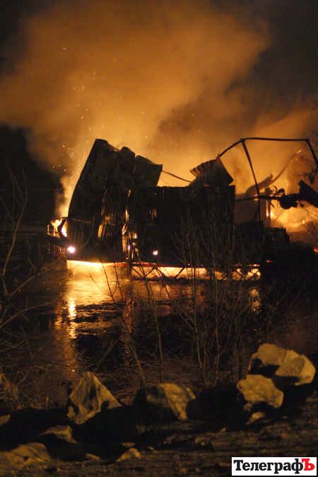 Дивитись на загибель «єдиного у Кременчуці бару на воді» зібралася чимала компанія зівак. Гасили вогонь чотири пожежні відділення. Що стало причиною пожежі наразі ні в міліції, ні у МНС сказати не можуть. Дехто стверджує, що чув на початку пожежі вибухи.