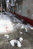 – Я побачила, як крижина падала з даху, – розповідає Анастасія, яка працює у будинку напроти. – А потім ми дивимося – жінка впала, а поруч – чоловік. Біля них бігала ще одна жінка і кричала: «Рятуйте!» Потім чоловік встав, перейшов дорогу і знову впав. Якраз проїжджав автомобіль міліції, зупинився. Певно, вони і викликали «швидку».