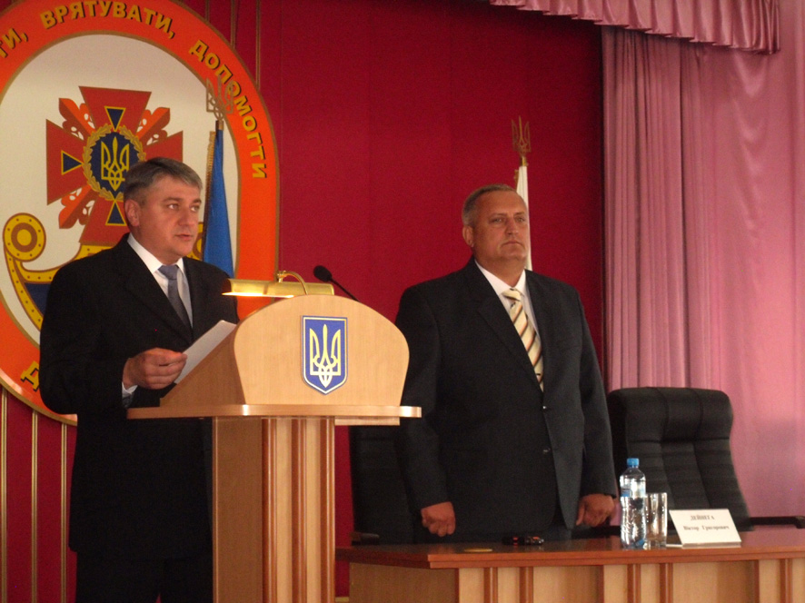 Первый заместитель Председателя ДСНС Украины Олег Мельчуцький (на фото слева) представил коллективу начальника Главного управления по Полтавской области