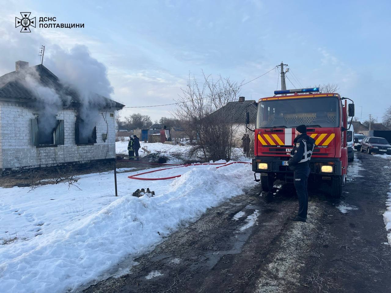 Близько 8.00 рятувальникам надійшло повідомлення про пожежу в селі Пироги Глобинської громади. На місце виїхали бійці 6-ї державної пожежно-рятувальної частини. Через сильне задимлення вони працювали в апаратах захисту органів дихання. У кімнаті, охопленій вогнем, виявили тіло людини. Будинок вдалося врятувати від повного знищення. За попередньою версією, причиною пожежі став недопалок.