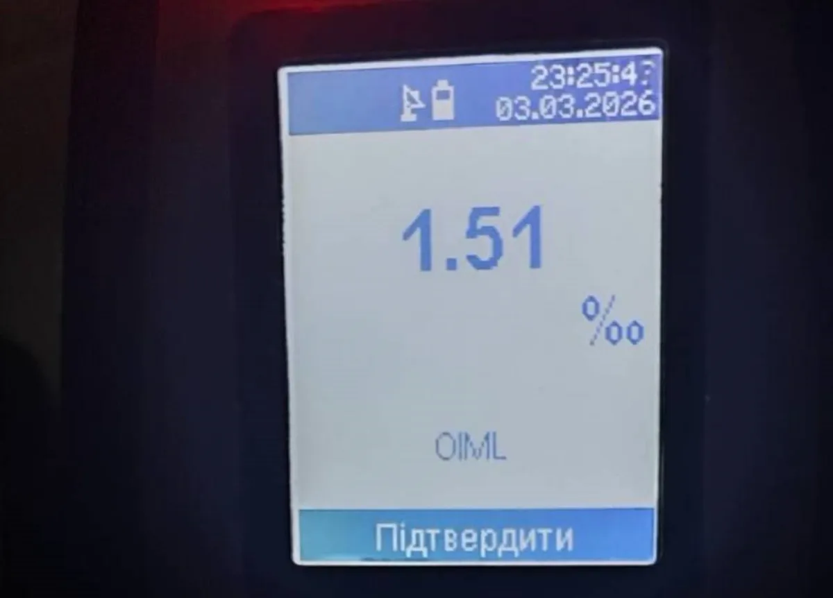 Під час спілкування з водієм інспектори помітили ознаки алкогольного сп’яніння. Перевірка на «Драгері» показала 1,51 проміле алкоголю, що майже у вісім разів перевищує допустиму норму.