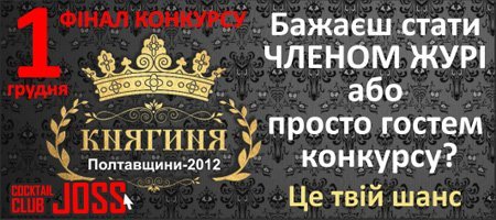Финальное шоу конкурса пройдет 1 декабря в cocktail club “JOSS”. У каждой из финалисток есть шанс стать «Княгиней Украины-2012».