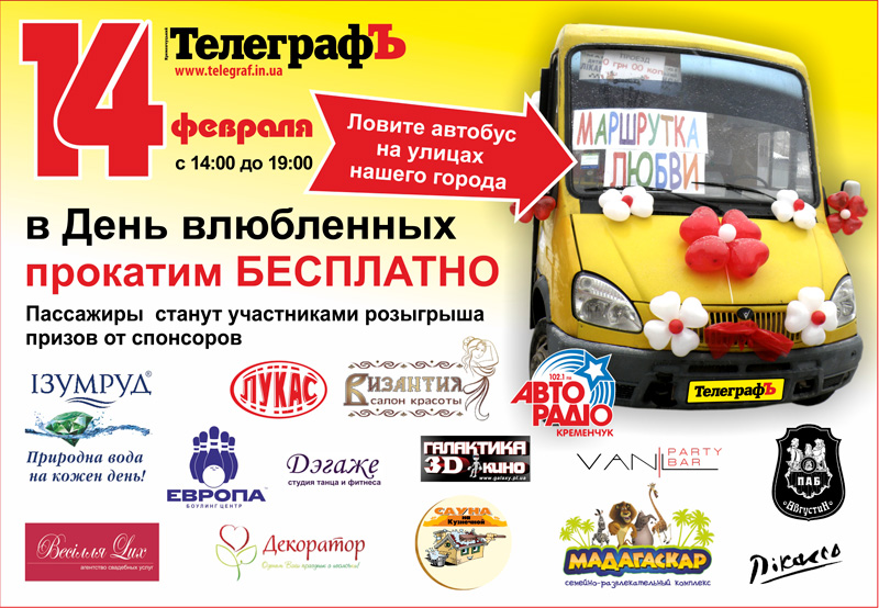 Газета «Кременчугский ТелеграфЪ» проводит ежегодную акцию, посвященную Дню всех влюбленных - «Маршрутка любви».