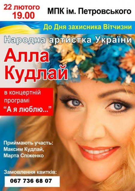 «Кременчугский Телеграф» разыгрывает 2 билета на концерт Аллы Кудлай, который состоится 22 февраля в ГДК.
