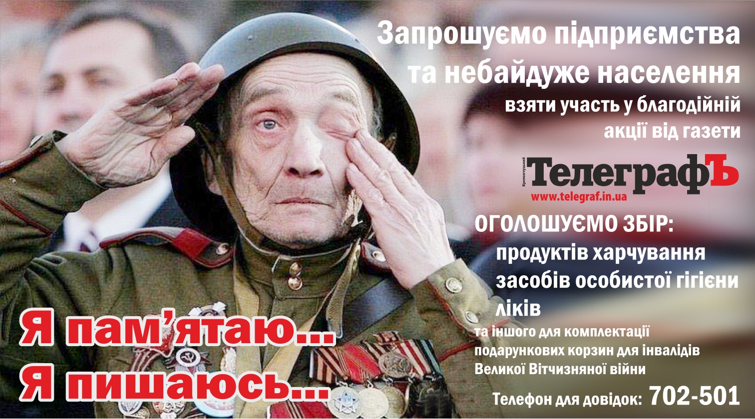 Еженедельник «Кременчуцький ТелеграфЪ» в преддверии 9 мая проводит ежегодную акцию «День Победы! Я помню! Я горжусь!»