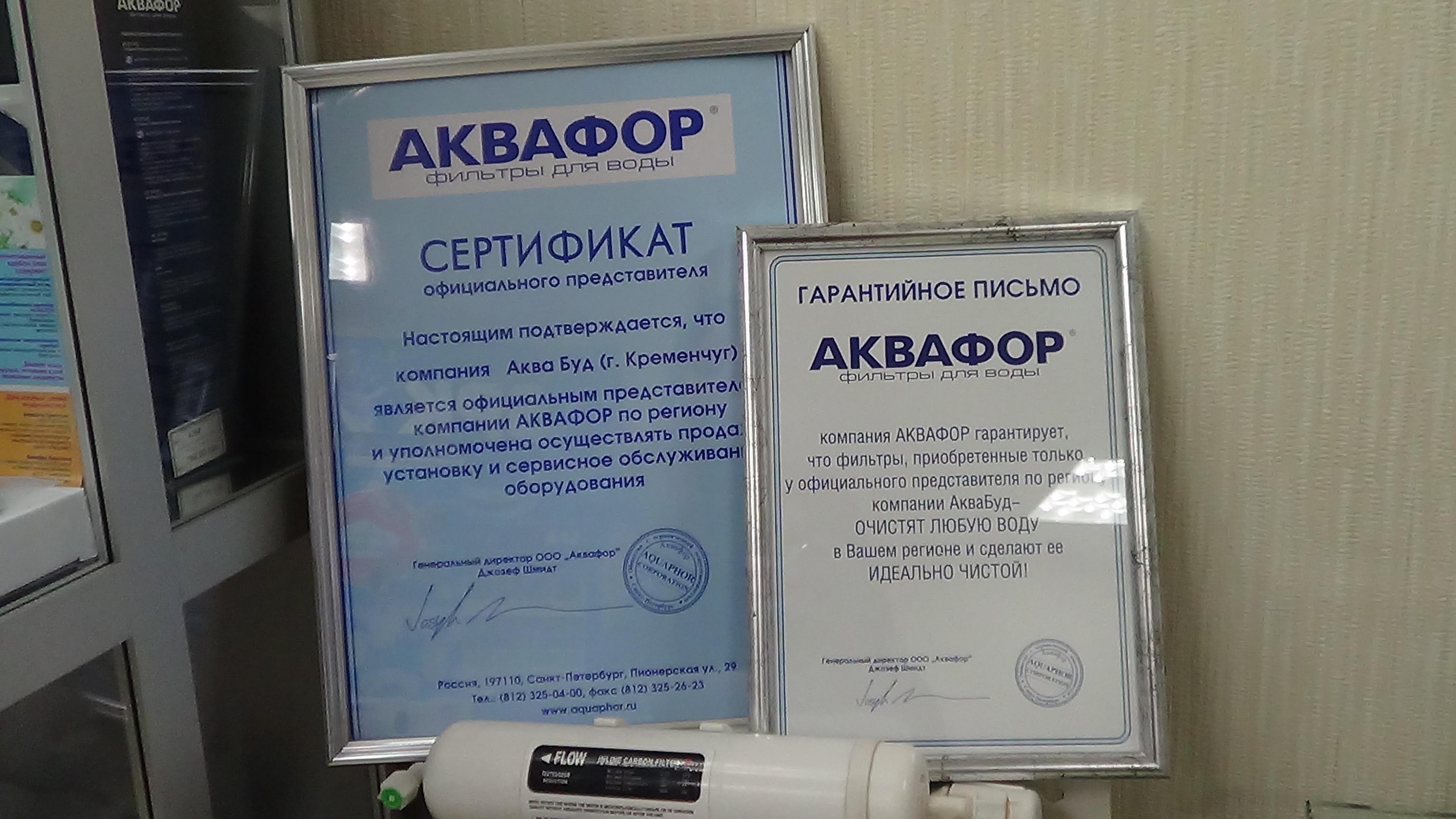 26 ноября в компании «Аквабуд» прошла встреча с представителем российско-американской корпорации «Аквафор», на которой был вручен Сертификат официального представителя «Аквафор» по Полтавскому региону и Гарантийное письмо компании.