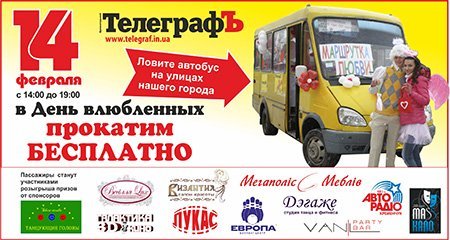 В пятницу, 14 февраля, на улицах Кременчуга снова появится «Маршрутка любви». Газета «Кременчугский Телеграф» уже пятый год подряд проведет всеми любимую акцию и поздравит влюбленных кременчужан с Днем Святого Валентина.