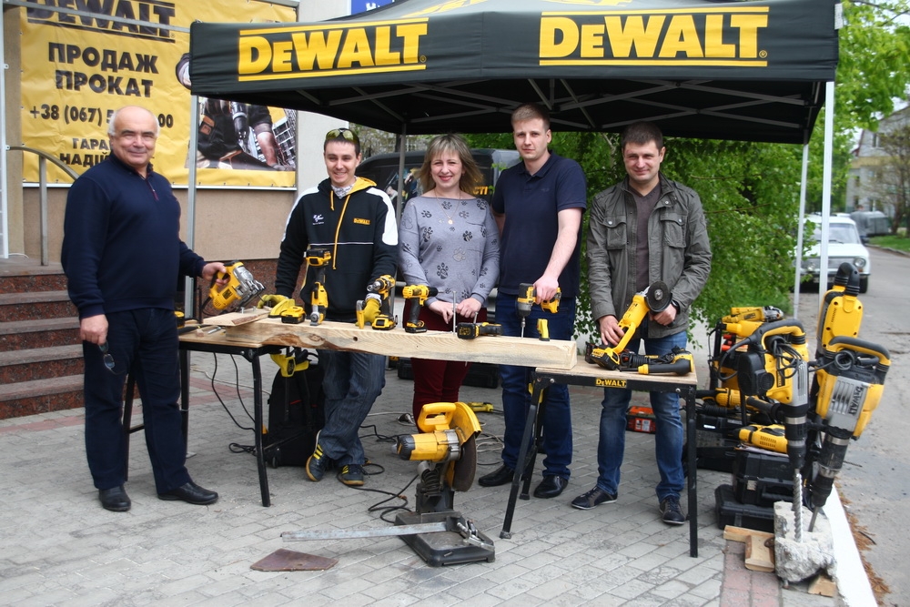 Представитель известного бренда DeWalt Сергей рассказал, что инструменты производят в США, Чехии, Италии, Мексики и Китае. Присутствующие испытывали шуруповерт бесщеточный, отбойные молотки, болгарки диаметром отрезного круга 230 мм.