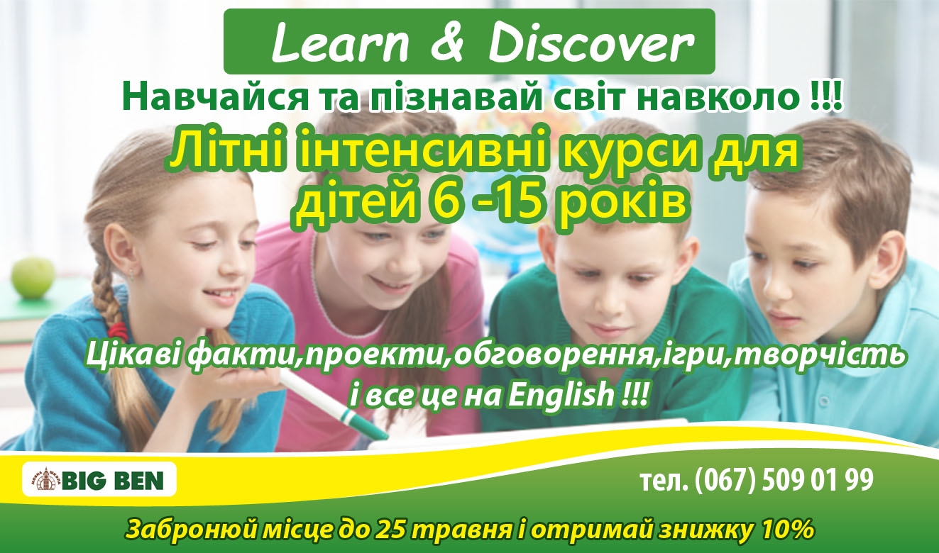 Приглашаем ваших детей на увлекательный, познавательный интенсив LEARN & DISCOVER (Учись и познавай мир вокруг) от языковой школы Big Ben.