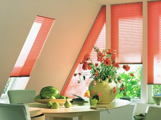 5. Удобная система открытия позволяет устанавливать плиссированные шторы на мансардных окнах, расположенных под углом к стене.