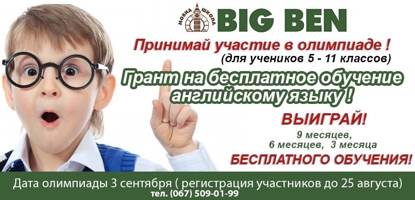 Призы – грант на обучение в Школе иностранных языков «BIG BEN» на 3, 6 и 9 месяцев.