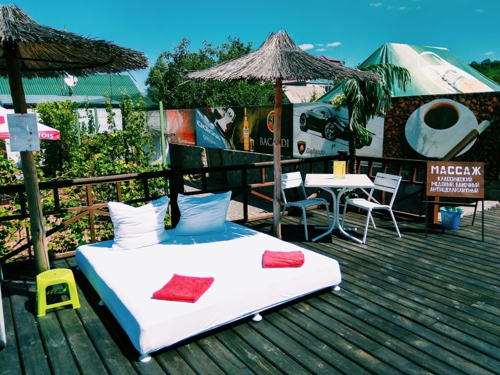 У нас есть собственный песчаный пляж. Гости могут воспользоваться лежаками и оборудованными соломенными зонтами. Работает прокат шезлонгов и полотенец.