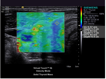 В основу волновой эластографии заложена возможность исследования эластичности мягких тканей. В отличие от доброкачественных опухолей, злокачественные — плотные, не эластичные и с трудом поддаются компрессии. На мониторе аппарата УЗИ более плотные ткани окрашены в голубой и синий цвета, жировая ткань приобретает желто-красный оттенок, а соединительная ткань — зеленый. Высокая специфичность метода позволяет избежать необоснованных биопсий. После прохождения УЗИ с эластографией пациент получает на руки развернутое заключение, в котором врач описывает: размер и положение исследуемого органа, наличие, размер и плотность новообразований, наличие и стадию фиброзных изменений, рекомендации по дальнейшему наблюдению у нужного специалиста.