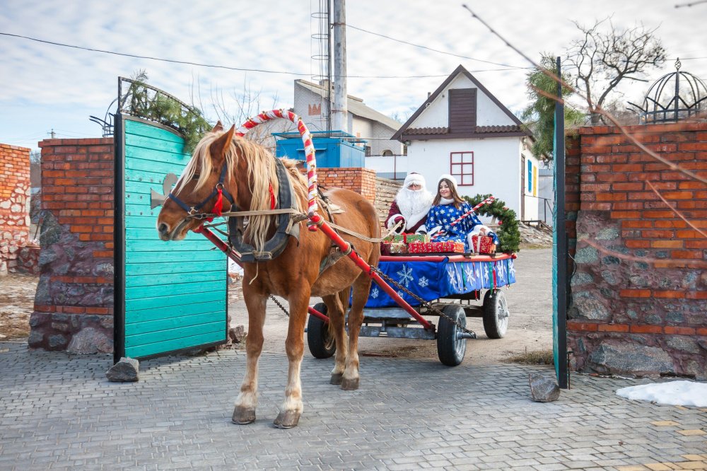 Для всех желающих маленьких и больших посетителей есть возможность прокатиться на повозке Дедушки Мороза, насладиться общением, погладить и сфотографироваться с его верной лошадкой, которая доставляет его в любую точку планеты в Новогоднюю ночь!