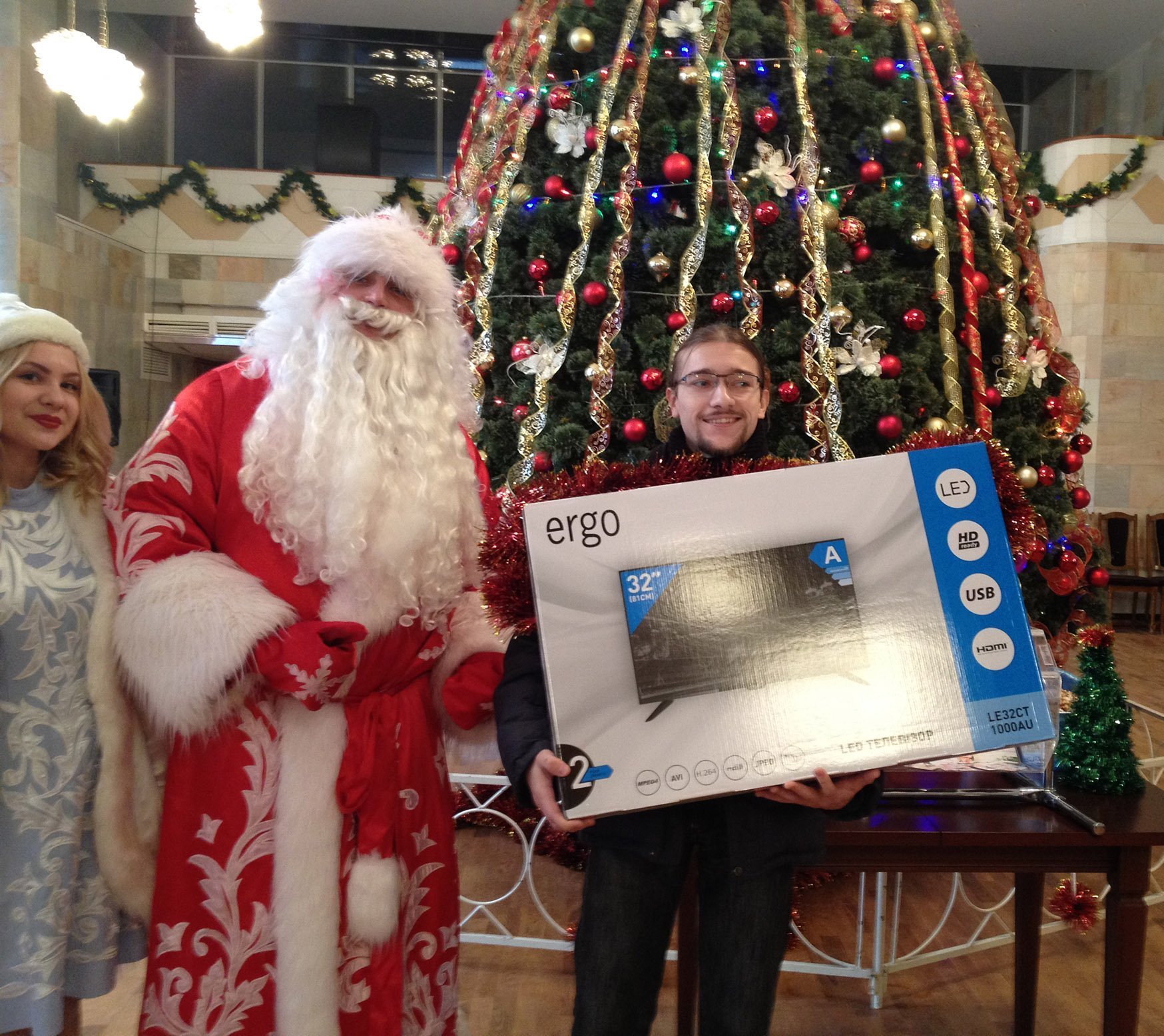 Розыгрыш телевизора прошел в тёплой дружеской атмосфере. Дед Мороз и Снегурочка приглашали детей из зала вращать барабан с конкурсными карточками. Перед тем, как определился присутствующий в зале победитель, детям пришлось доставать карточки пяти участников, которые не пришли и пропустили свой «счастливый билет». Шестая попытка все же увенчалась успехом – счастливцем оказался Кирилл Литовка, который пришел на конкурс с женой.