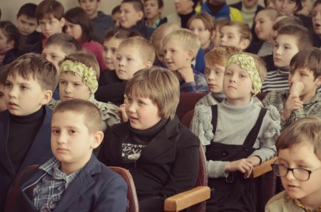 Следующие на очереди были воспитанники Кременчугской специальной школы-интерната Полтавского областного совета. Публика оказалась очень благодарной и отзывчивой. Стоит отметить, что спектакль с удовольствием смотрели не только младшие дети, но и ученики старших классов.