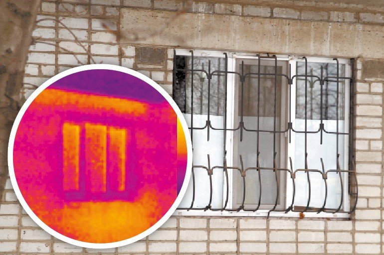 Вікно у звичайному наймасовішому трикамерному профілі. Як бачите – тепло (жовті й червоні кольори) хоч і не «свистить», але виходить через вікно – і через скло, і через сам профіль.