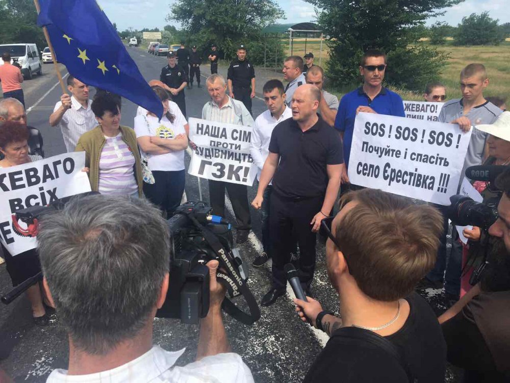 Мешканці села Єристівка цього тижня перекрили дорогу, бо ГЗК вже перекрив їм кисень. Люди понад годину разом з народним депутатом Сергієм Капліним тримали рух на трасі Полтава-Олександрія. Селяни бідкаються - гірничо-збагачувальний комбінат підступив прямо під їхні оселі: будинки тріскаються, вода з криниць зникла, ґрунтові води теж, городи і дерева не родять, А тому бояться, що мало хто доживе до відселення, запланованого через 20 років.