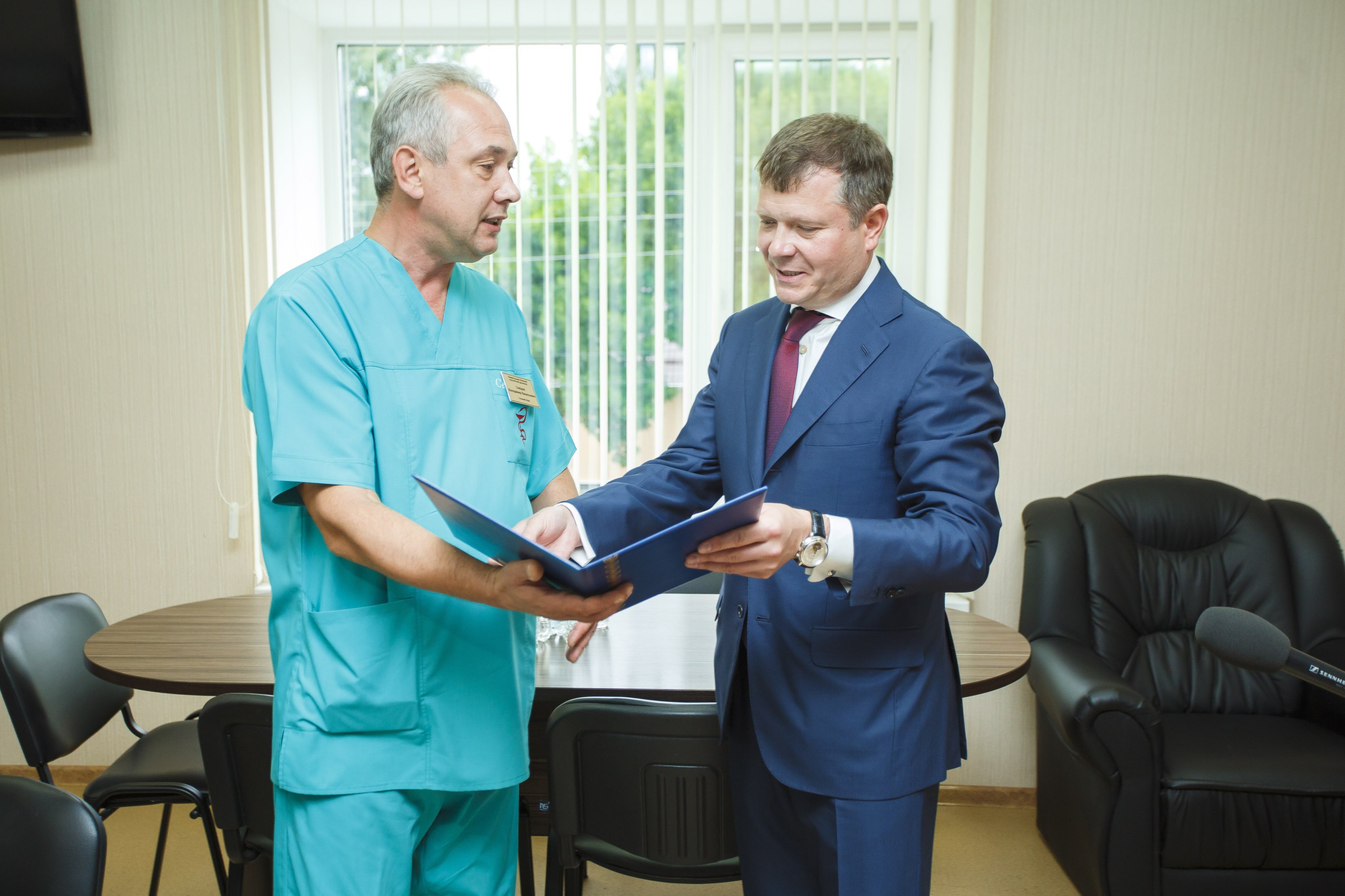 На завершення зустрічі головний лікар онкодиспансеру щиро та від чистого серця вручив Костянтину Жеваго подяку від пацієнтів та персоналу лікарні.