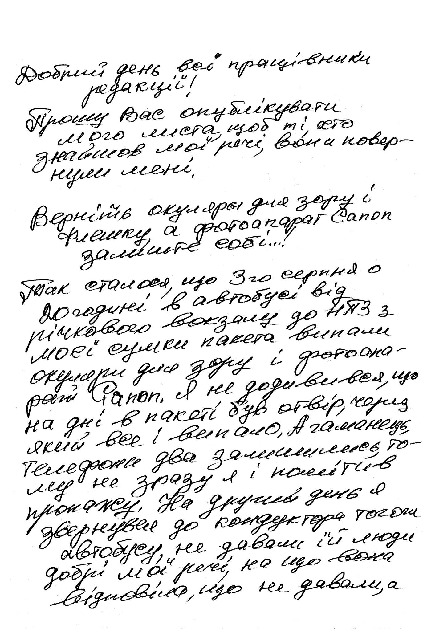 3 августа в 20.00 в автобусе, следующему по маршруту «Речной вокзал-НПЗ», был утерян фотоаппарат Canon и очки для зрения.