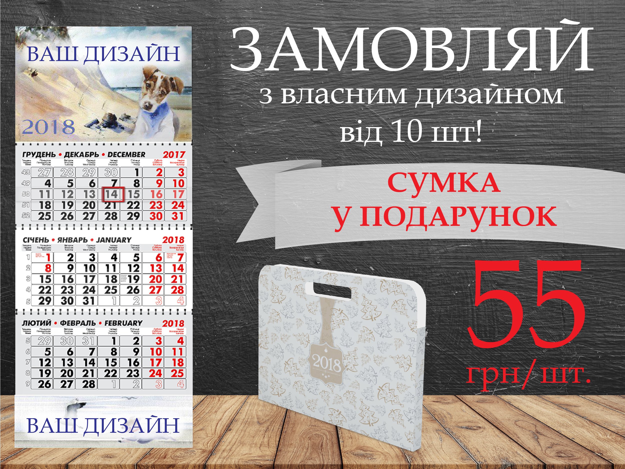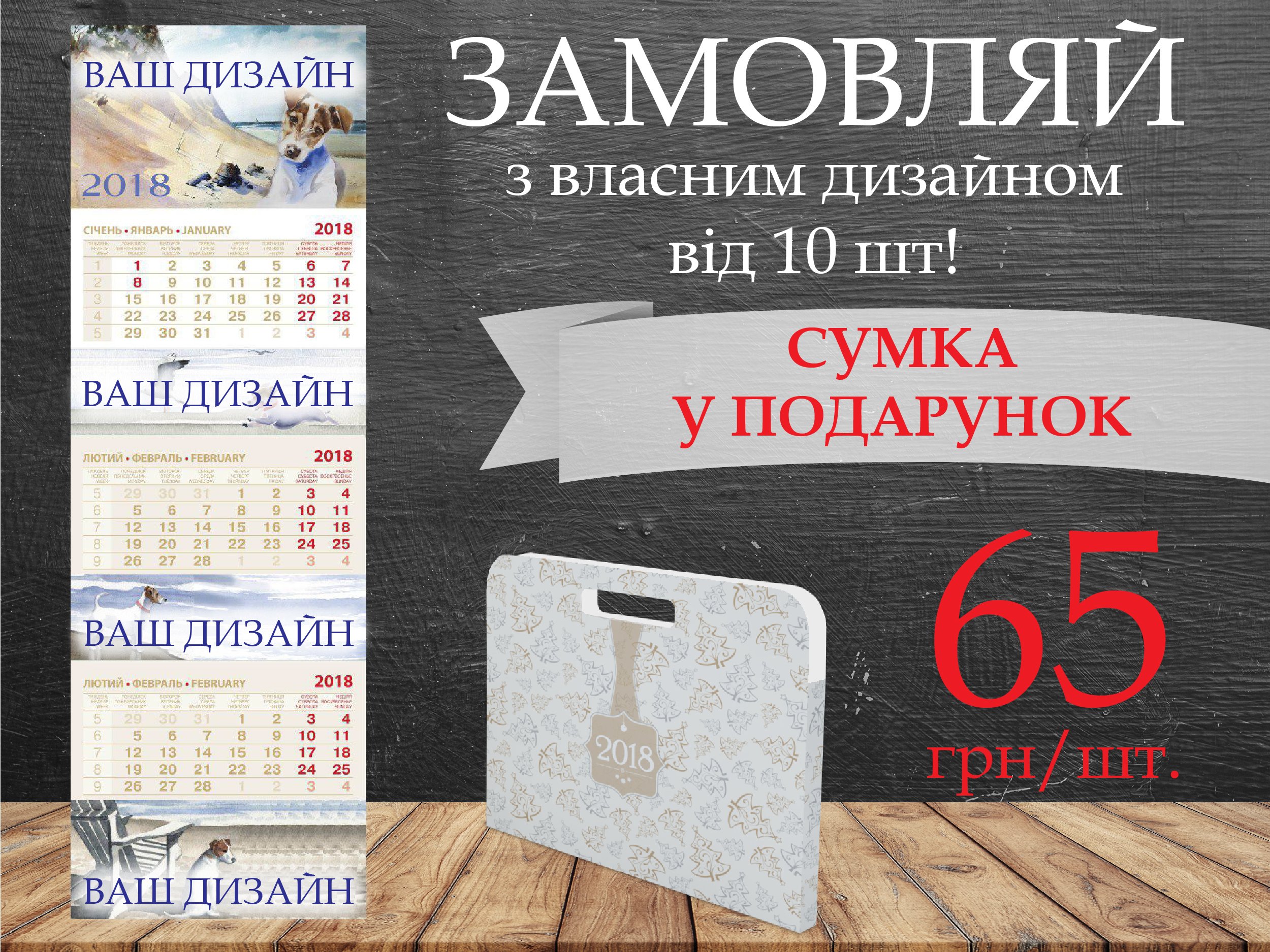 1. Замовляй квартальний календар «Стандарт» з власним дизайном від 10 шт та отримай картонну сумку для цього календаря у подарунок!