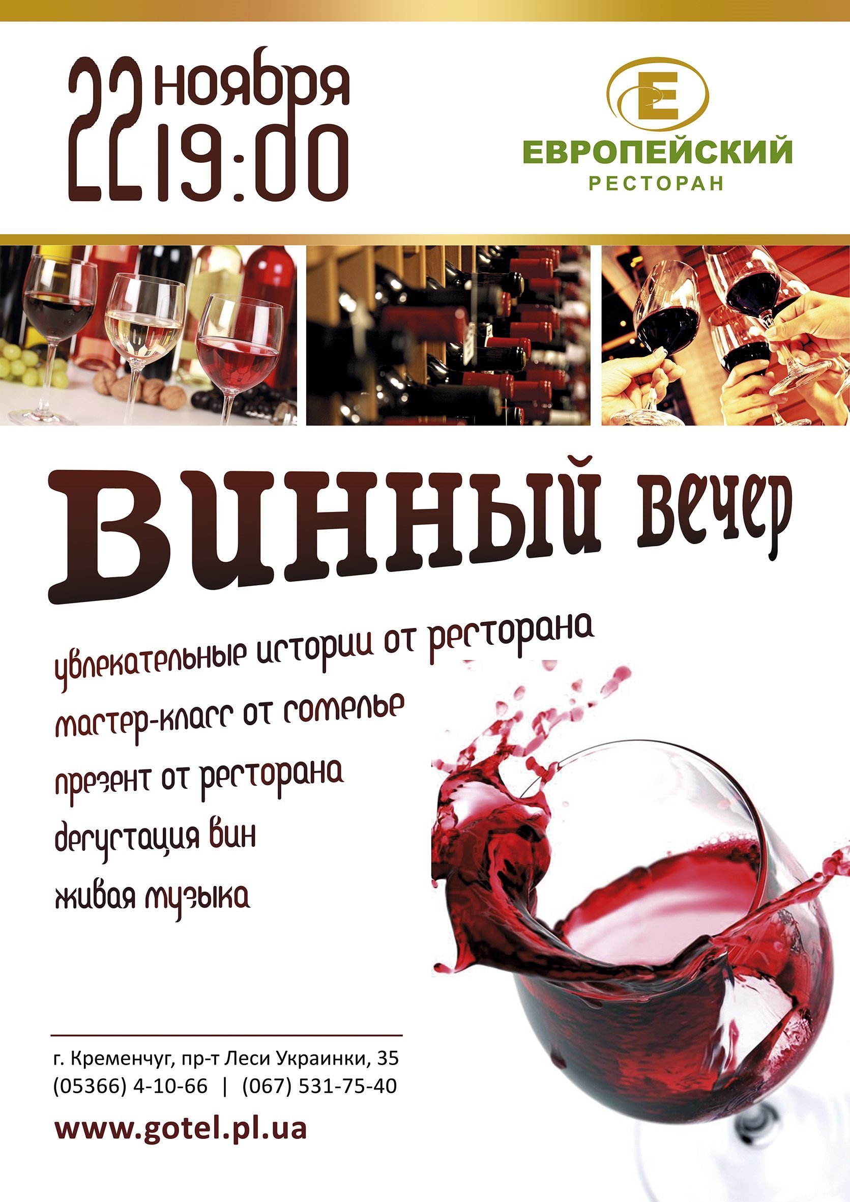 22 ноября в 19:00 Приглашаем всех провести приятный вечер в ресторане «Европейский».