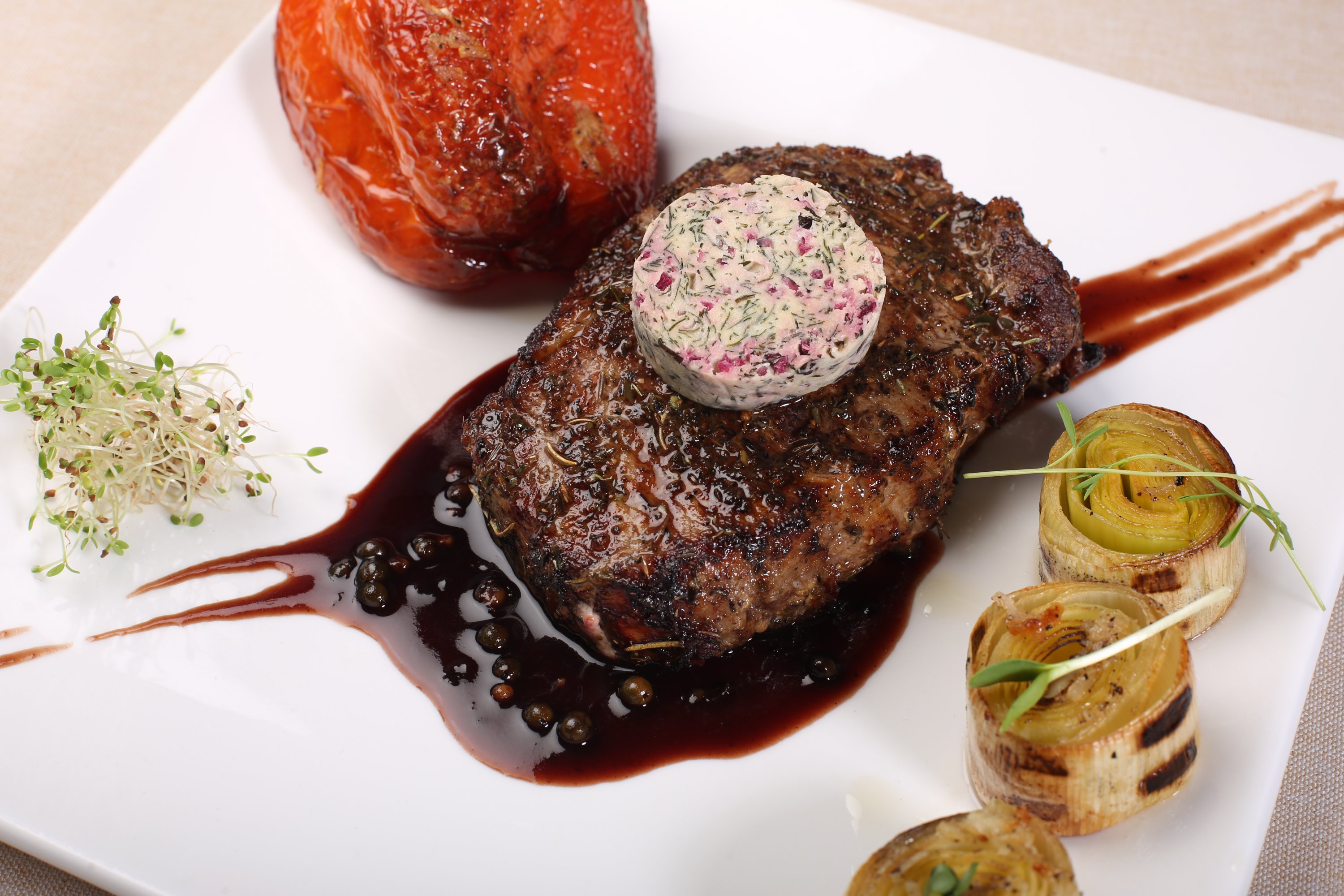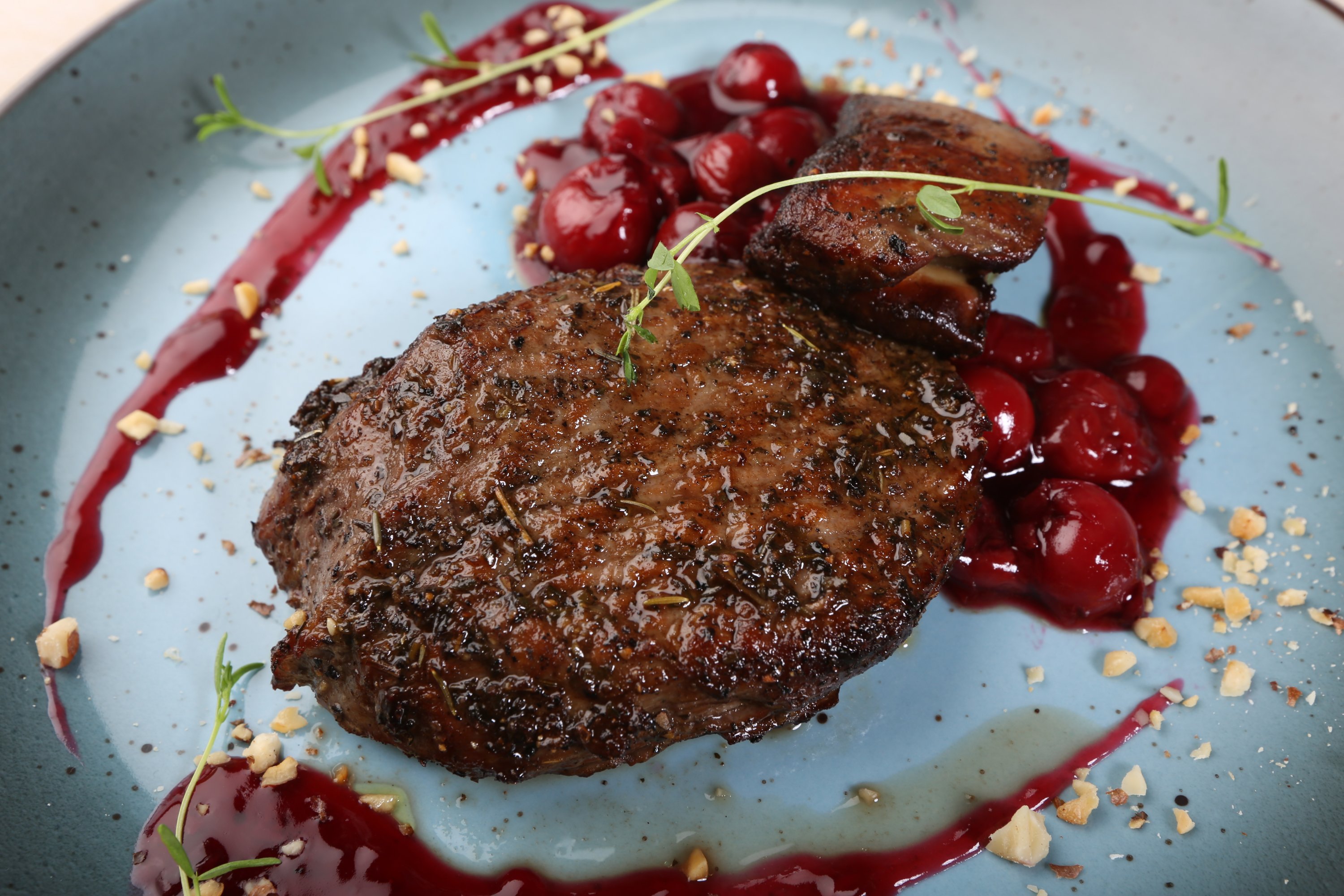 Cтейк из телятины с фуа-гра под вишневым соусом