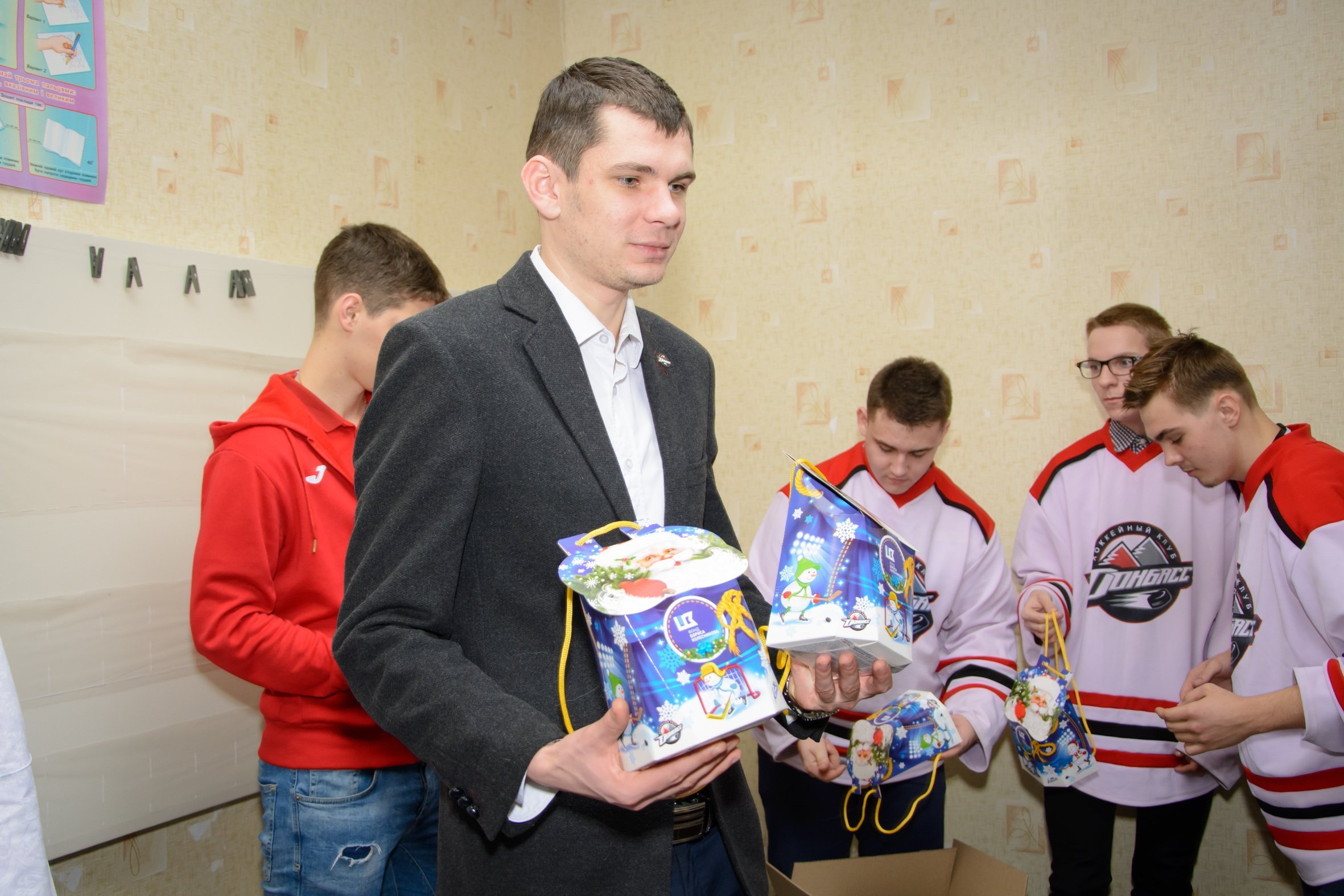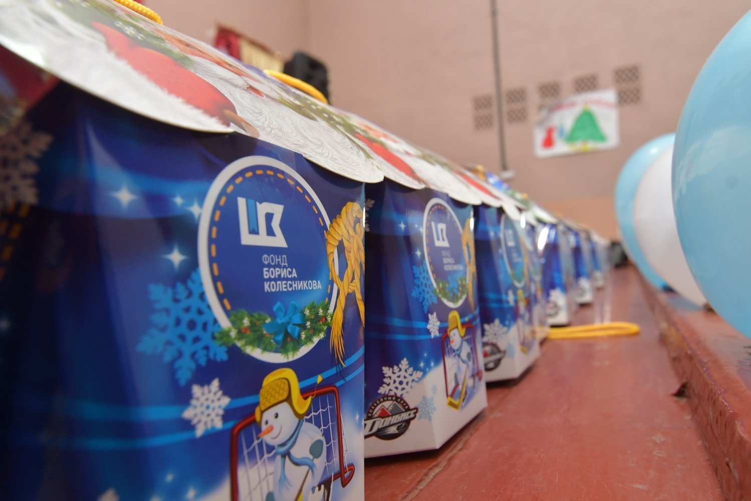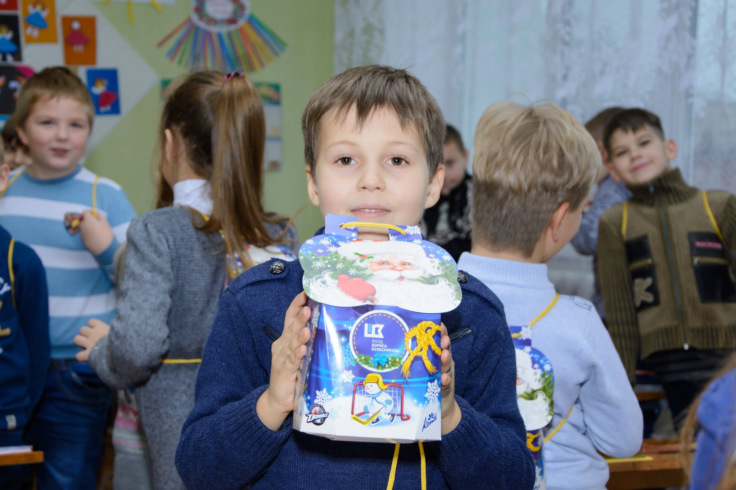 Уже четвертый год благотворительный Фонд Бориса Колесникова и хоккейный клуб «Донбасс» реализуют программу поддержки детей Донецкой области. Представители организаций объезжают учебные заведения, дарят сладости, позитивные эмоции и настроение малышам в преддверии Нового года.