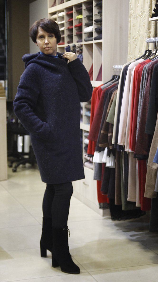 Через неделю мне перезвонили. Заехала с подругой. Новая модель пальто, которое выбрала, оказалось ещё интересней по цвету и дизайну. Спасибо, Laf!