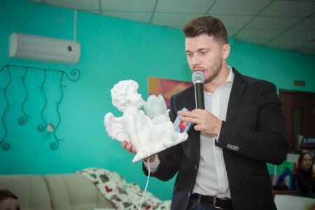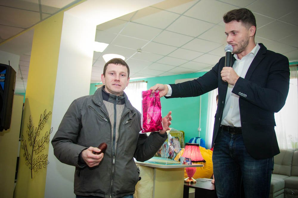 Валерию Лысенко достался светильник с ангелом. «Победа!» - закричал мужчина, услышав свое имя, и радостно выбежал на сцену.