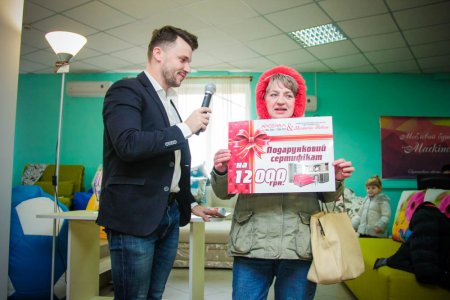 13 января корпорация «Арсенал и Мегаполис Мебели» сделали для своих покупателей приятный сюрприз. Все клиенты, которые совершили в декабре покупку на сумму от 5 тысяч гривен, смогли поучаствовать в розыгрыше подарков, которые непременно создадут уют любому дому, а также главного приза – сертификата на сумму 12 тысяч гривен.