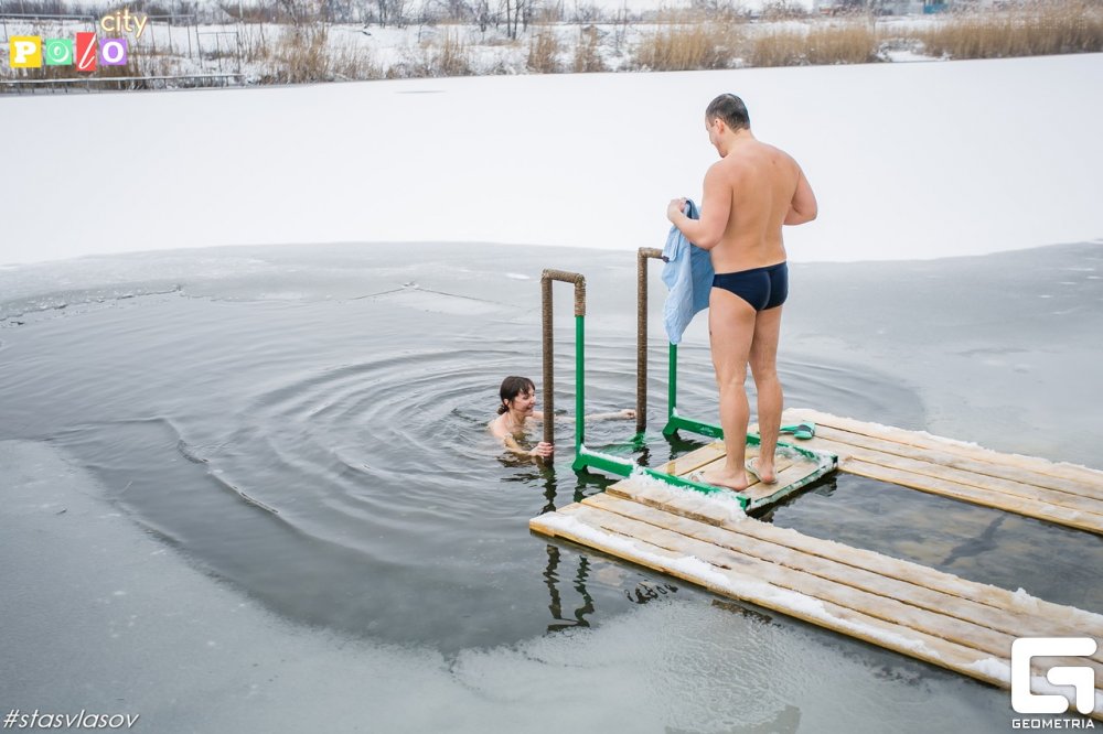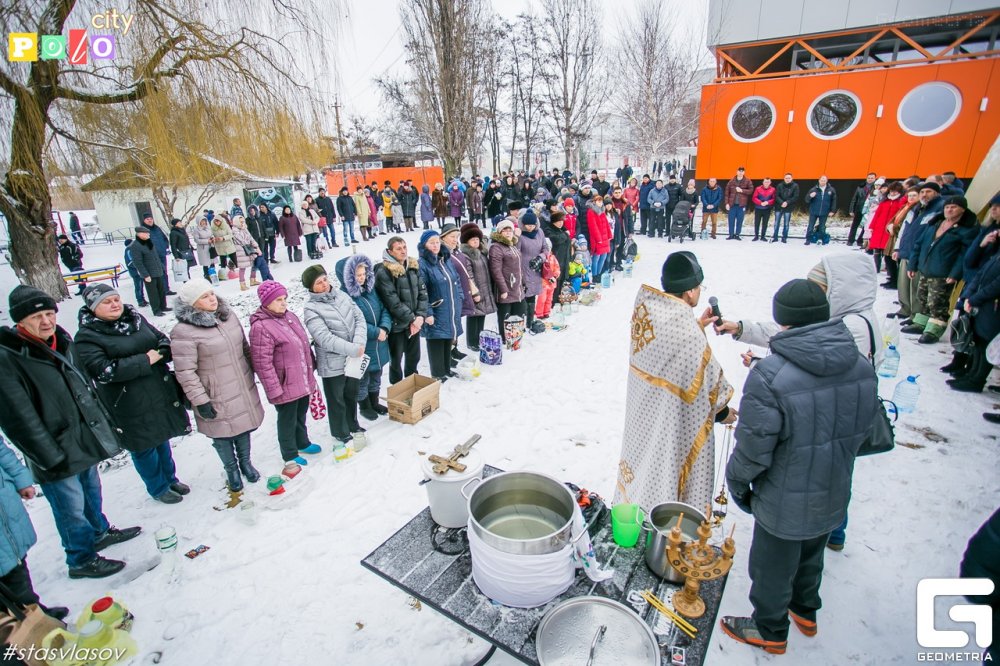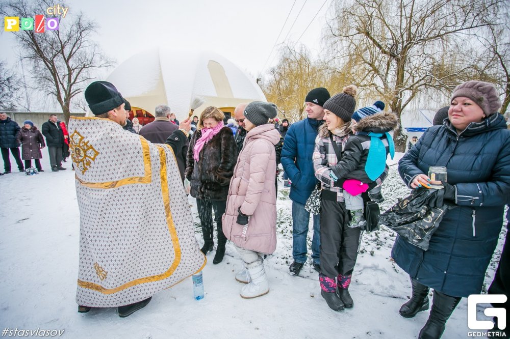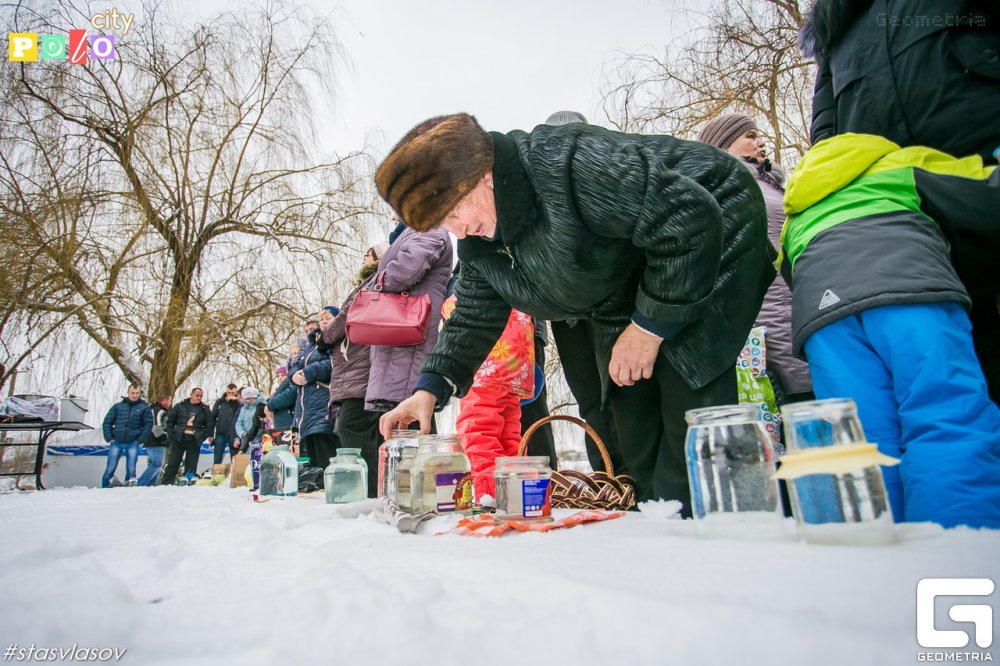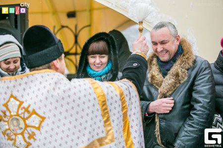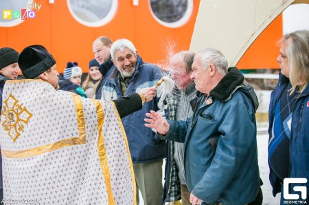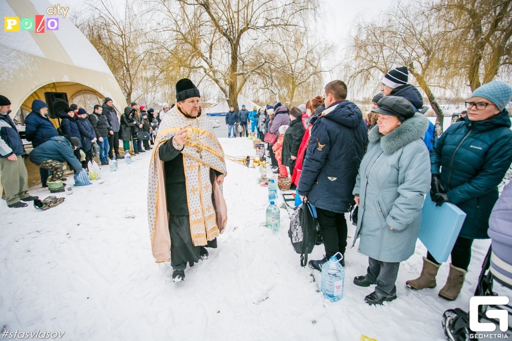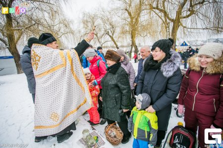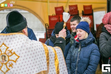 Провести обряд освящения воды пригласили Отца Юрия из Киевского патриархата, все строго по обряду. Все время, пока люди окунались в прорубь, за ними зорко следили спасатели. А все пришедшие согревались бесплатным чаем с баранками и комплиментом от шеф-повара — фирменными бутербродами с салом, напитками и горячим пловом. Праздничное настроение дарили всем задорные украинские песни в исполнении колоритных участниц народного коллектива.