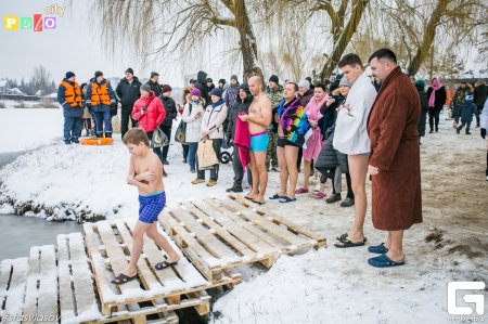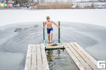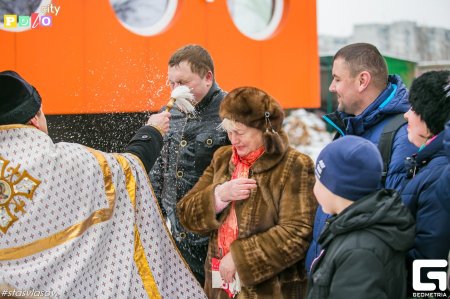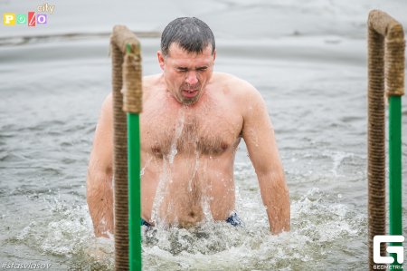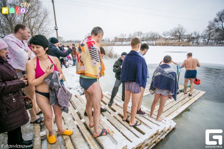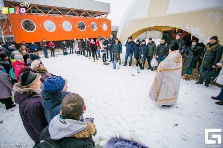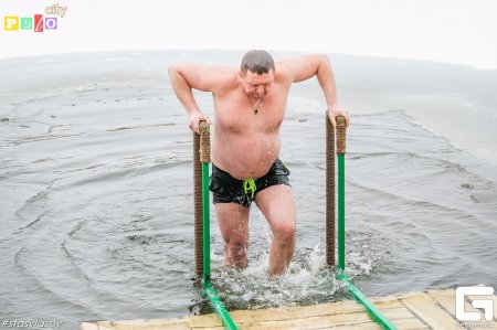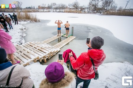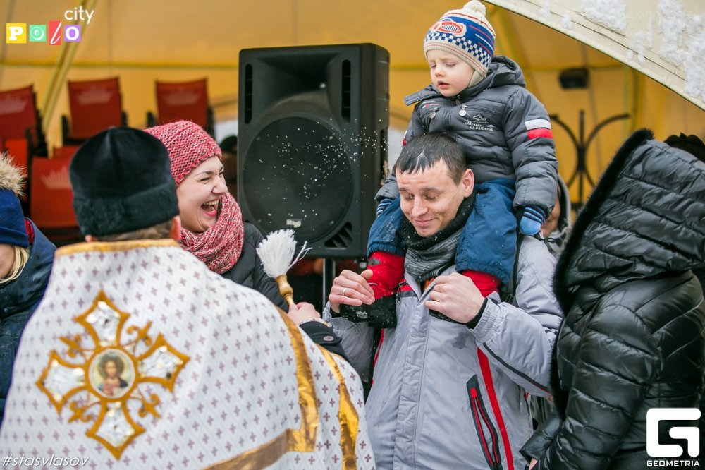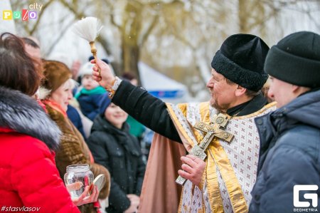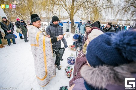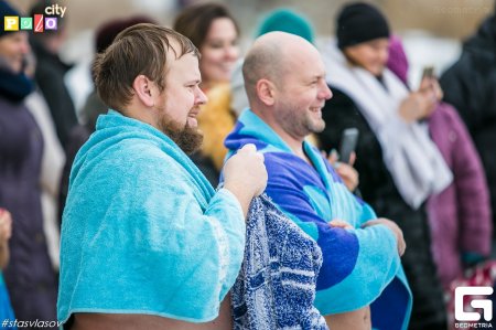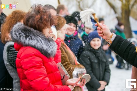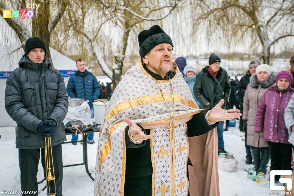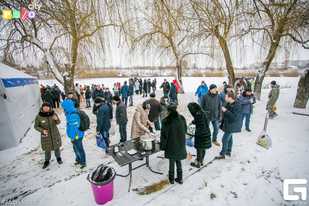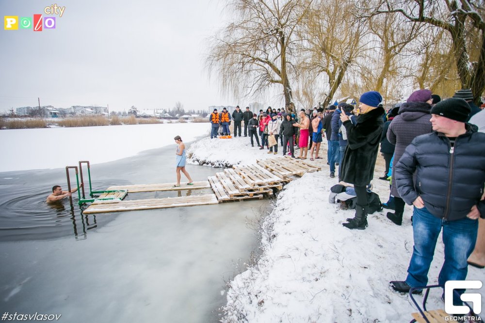 Провести обряд освящения воды пригласили Отца Юрия из Киевского патриархата, все строго по обряду. Все время, пока люди окунались в прорубь, за ними зорко следили спасатели. А все пришедшие согревались бесплатным чаем с баранками и комплиментом от шеф-повара — фирменными бутербродами с салом, напитками и горячим пловом. Праздничное настроение дарили всем задорные украинские песни в исполнении колоритных участниц народного коллектива.