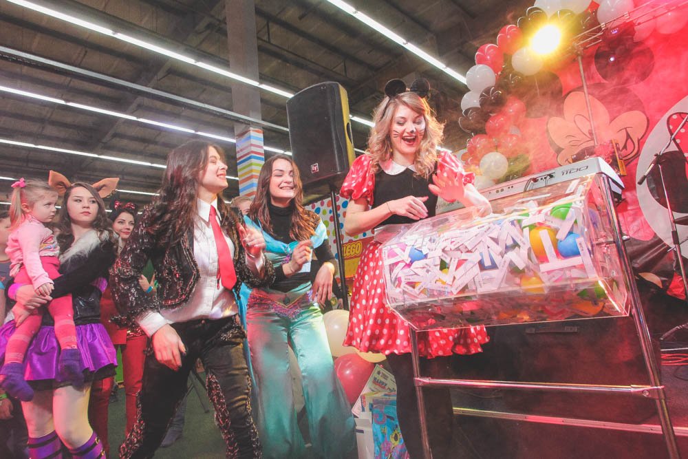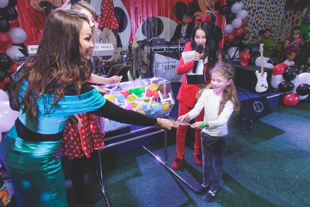 Очаровательная ведущая в костюме Минни и её помощница определяли победителей и вручали им призы.